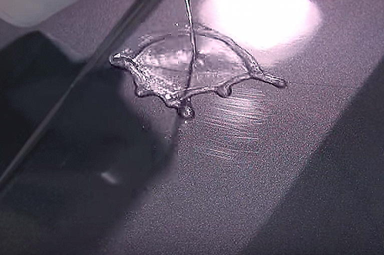 撥水性:水玉がコロコロ転がり、汚れを一緒に運び落とす