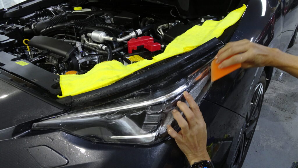 手作業で「プロテクションフィルム 手切り コツ」を掴むことは非常に難しいですが、車体へのダメージを避けるためには、徹底した養生が最重要です。